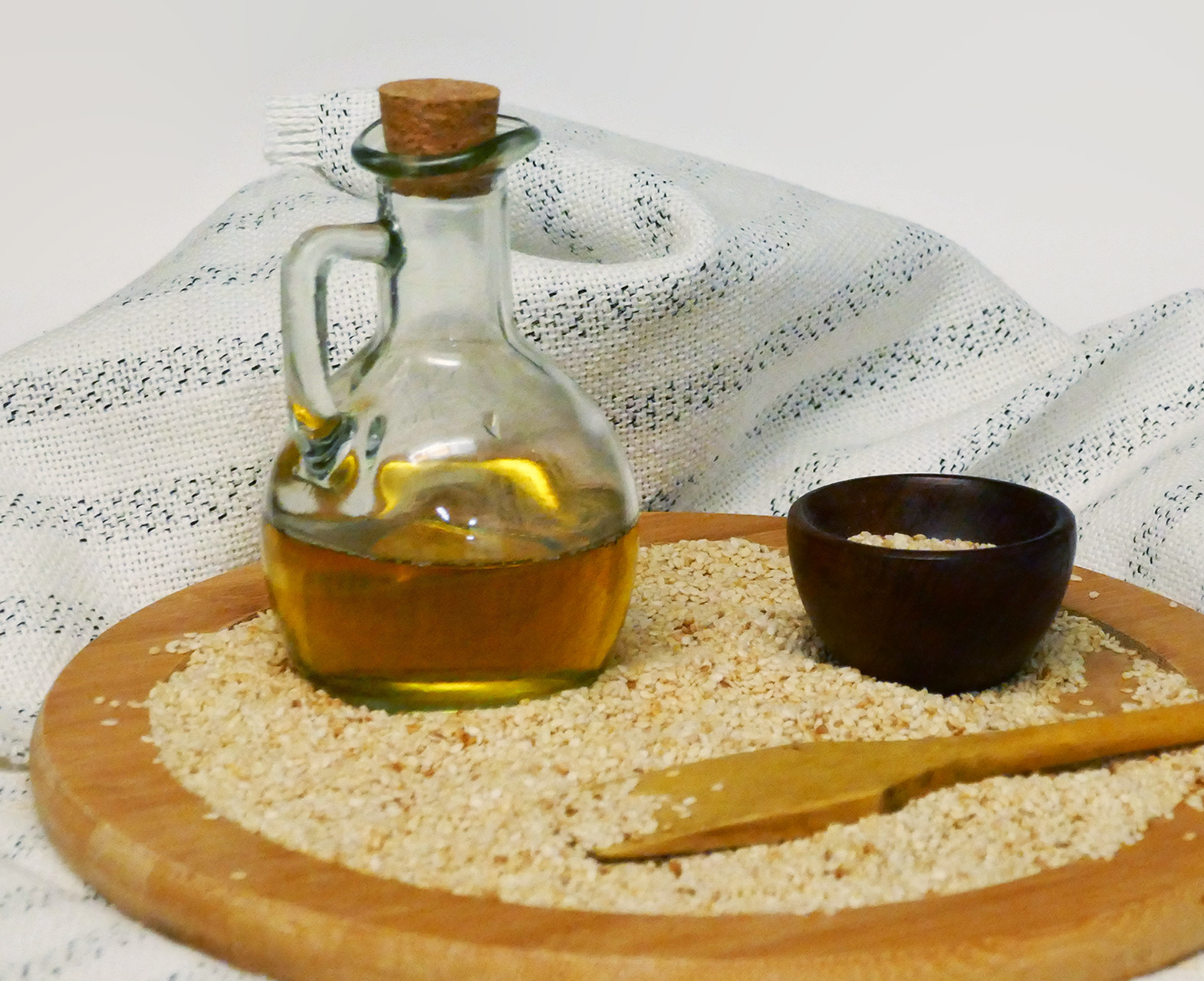 Sesame oil contains a high percentage of linoleic acid (Omega 6), along with vitamin E, which serves as a natural sunscreen.
